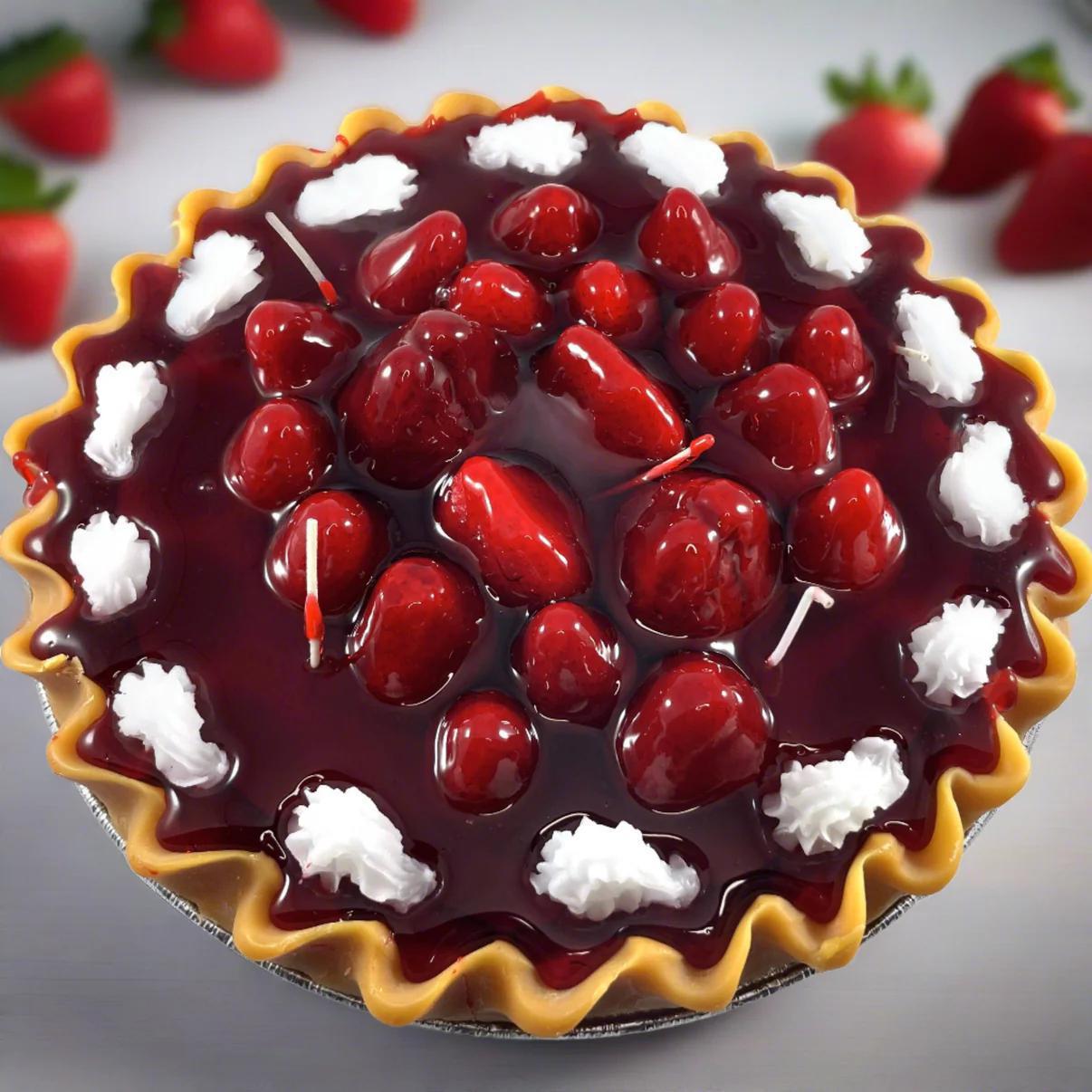 Pie Candles - Our pie candles undergo meticulous hand-pouring, assembly, and are adorned with a gel wax glaze. Infused with our Strawberry fragrance, each pie replicates both appearance and aroma authentically. Equipped with 5 wicks and offering over 30 hours of burn time, they double as charming decorations even when unlit. Shipped in clear plastic restaurant "to go" containers, not only do these protect the pie during transit, but they also simplify wrapping for gifting purposes.