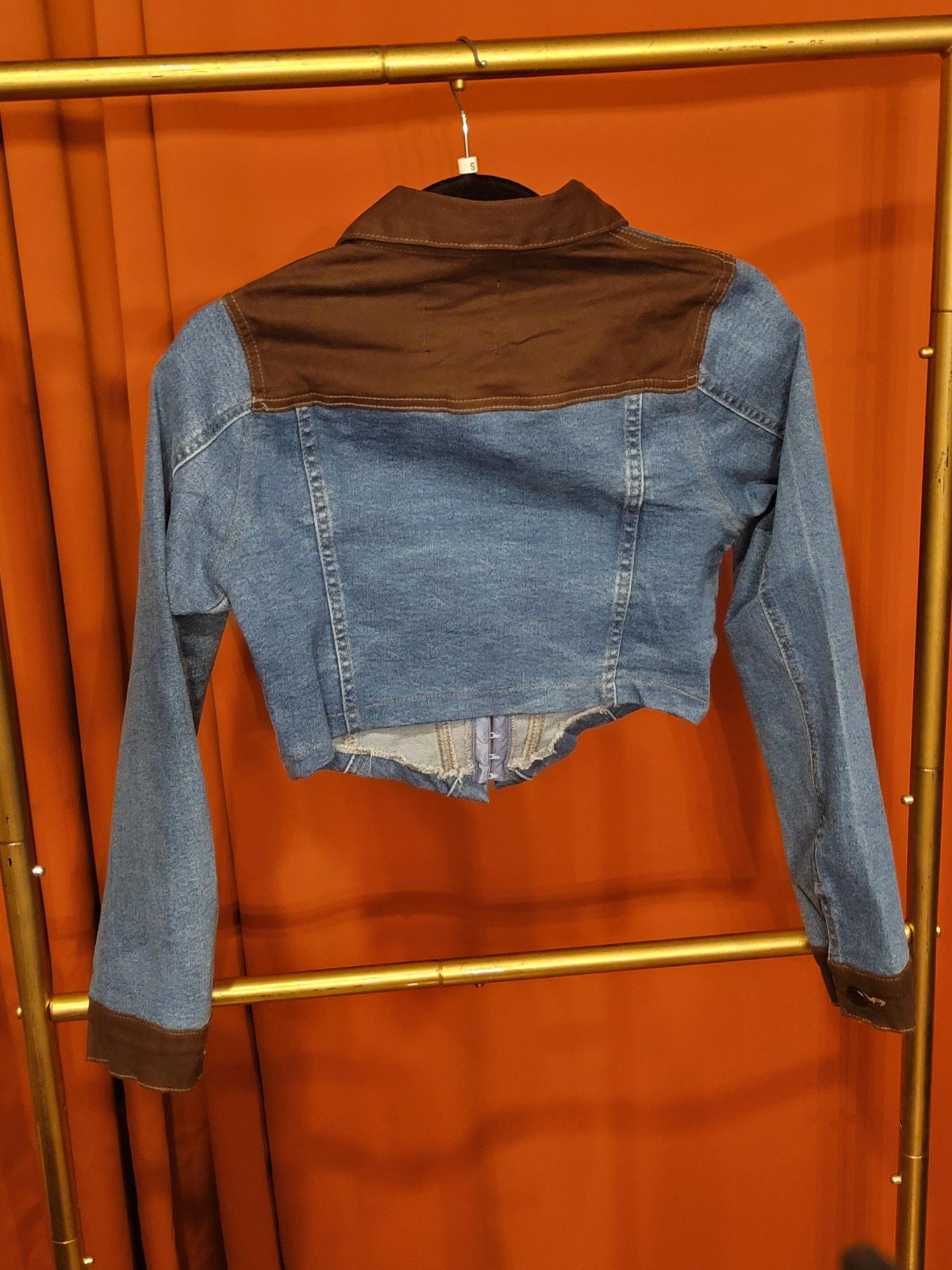 Chopped Corset Jacket Contrast Brown Neck