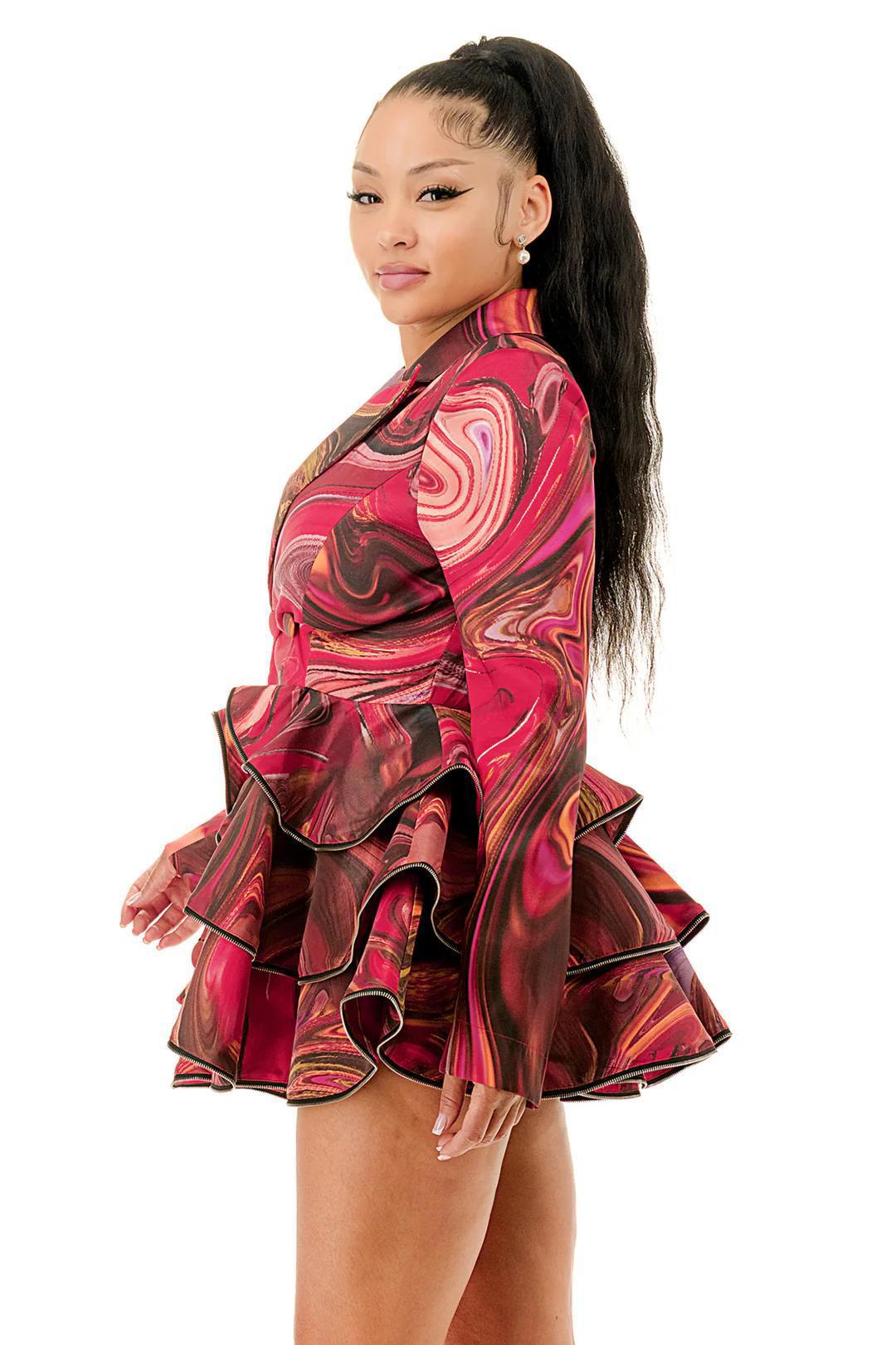 RED RUFFLE ZIPPER HEM BLAZER DRESS